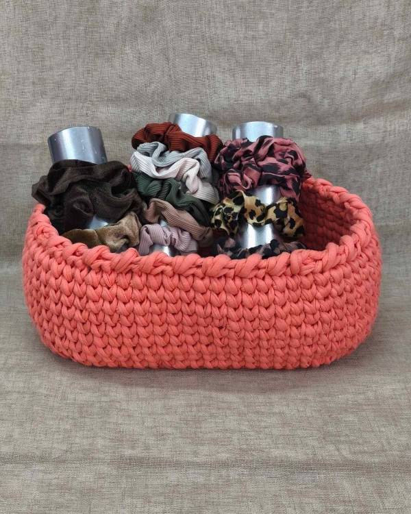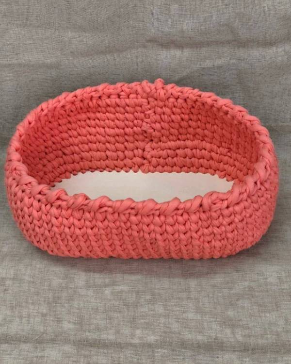 Χειροποιήτο καλάθι με ξύλινη βάση, πλεγμένο με μαλακό νήμα σε χρώμα ρόζ έντονο. Ιδανικό για αποθήκευση και οργάνωση δίαφορων αντικειμένων και τέλειο δώρο για τους αγαπημένους σας. Η διάσταση του είναι 31 Χ 14 εκ.