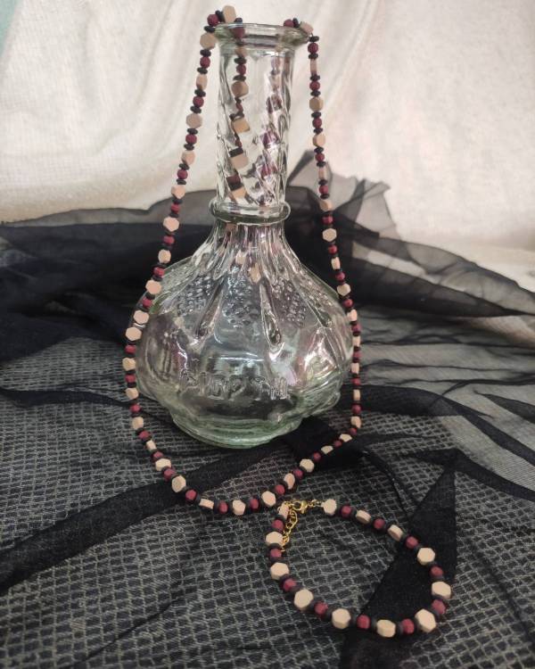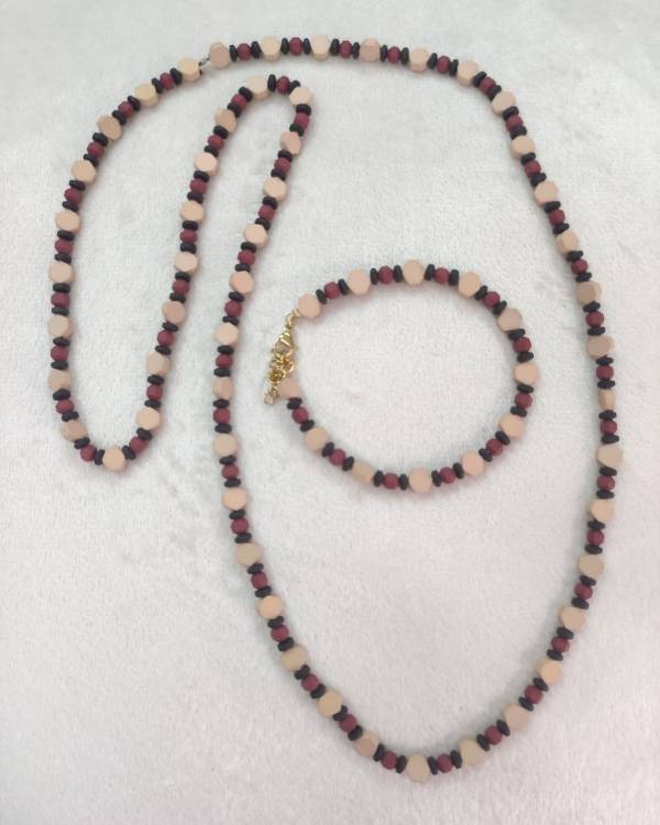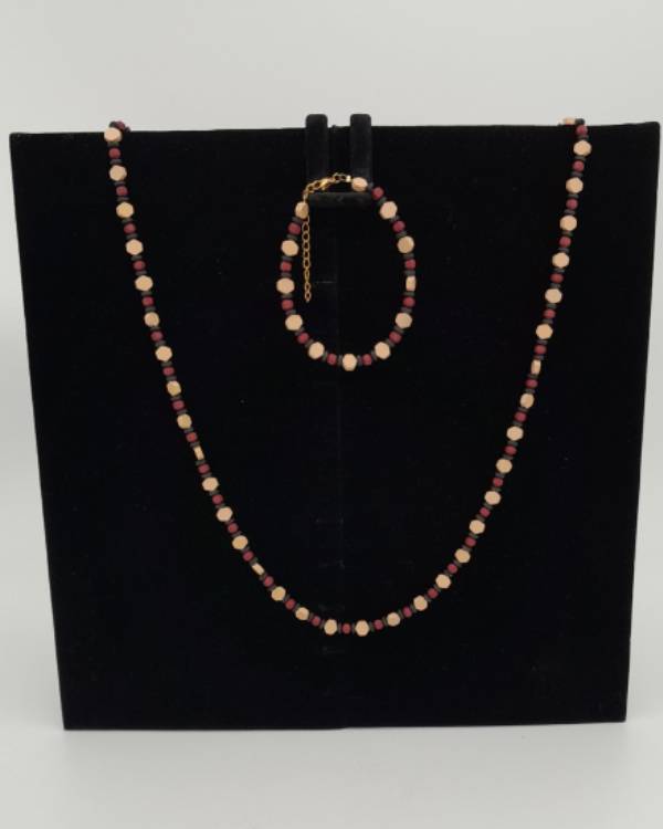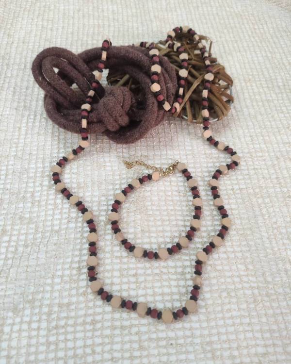 Κολίε σετ με βραχίολι. Το κολίε είναι πολύχρωμο με πέτρες αιματιτη εκρού , μπορντό , μάυρο. Το μάκρος του 36 εκ. Το βραχιόλι είναι με τις ίδιες πέτρες , περασμένες σε ατσαλόσυρμα και διαθέτη κούμπωμα αυξομείωσης με αλυσιδάκι , με μάκρος 17 εκ.