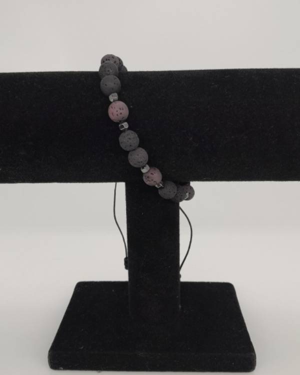 Βραχίολι ανδρικό χειροποίητο με ημιπολύτιμες πέτρες απο λάβα και αιματιτη. Με κούμπωμα αυξομείωσης. Μάκρος 19 εκ, μαζί με το κούμπωμα είναι 20 εκ.