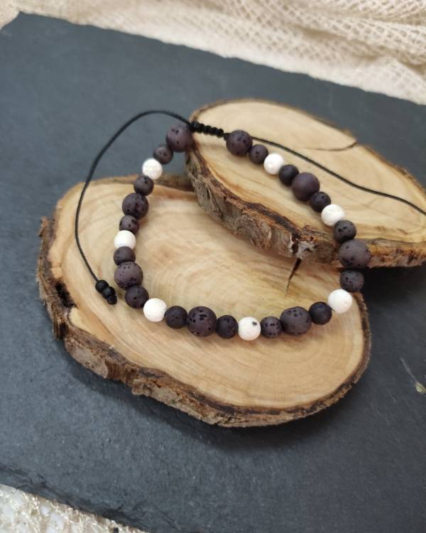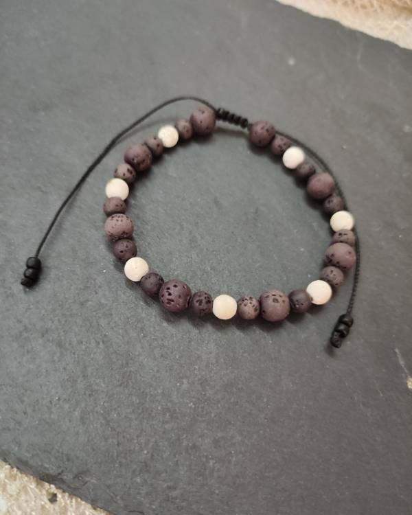 Βραχίολι ανδρικό χειροποίητο με πέτρες απο λάβα .Διαθέτει κούμπωμα αυξομείωσης. Μάκρος 19 εκ, μαζί με το κούμπωμα είναι 20 εκ.