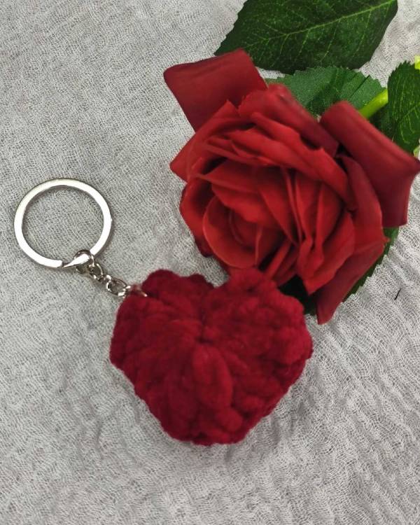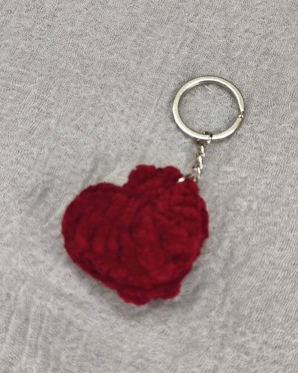 Χειροποιήτο πλεκτό μπρελόκ καρδία, πλεγμένη με νήμα βελούδινο κόκκινο και με κρικάκι ασημί με αλυσιδάκι. Η δίασταση του είναι 10 εκ 'ολο μαζί και 5 Χ 5 εκ το σχέδιο.