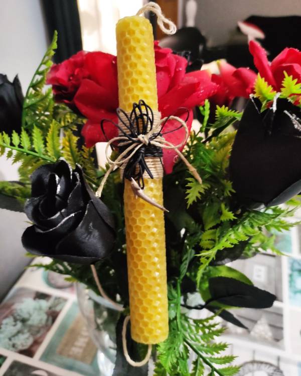 Χειροποιήτη λαμπάδα κυρήθρα, με  κορδέλες και κολιε δελφίνι. Με διάσταση 25  εκ. Σας έρχεται σε συσκευασία λαμπάδας.