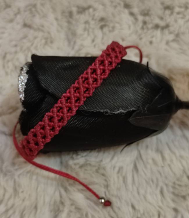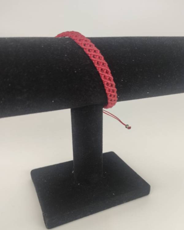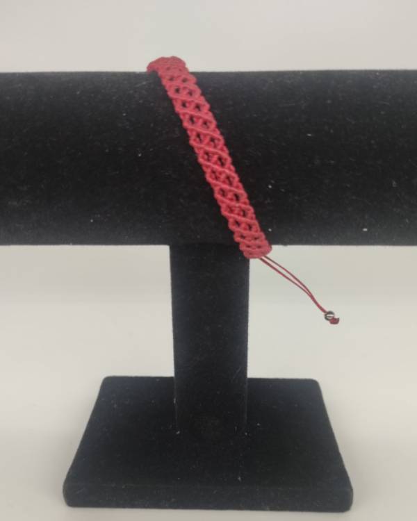 Βραχίολι μακραμέ χειροποίητο χιαστί πλεγμένο με κηροκλωστή σε χρώμα κόκκινο . Διαθέτει κούμπωμα αυξομείωσης. Μάκρος 15 εκ και φάρδος 1 εκ.