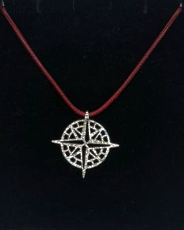 Κολιέ Ανδρικό με Στοιχείο Πυξίδα Κορδόνι Μπορντό