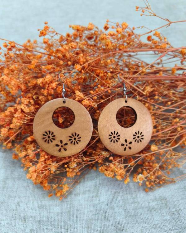 4  β  σκουλαρικια ξυλινα στρογγυλα λουλουδακια (1)