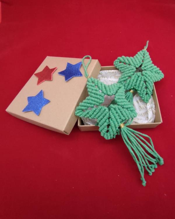 Σέτ απο 2 χειροποίητα μακραμέ χριστουγεννίατικα στολίδια , πράσινο ανοιχτό , αστέρια.Με δίασταση 10 Χ 10 εκ , με τα κρόσια 15 εκ και με το κορδόνι το ύψος 21 εκ. Σε συσκευασία δώρου , ετοιμα να τα προσφέρετε στους αγαπημένους σας ή στον εαυτό σας.