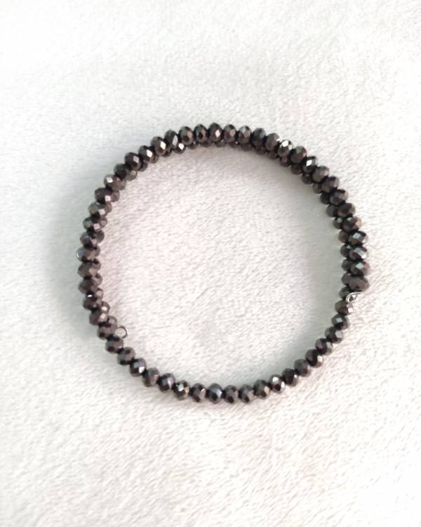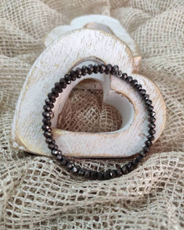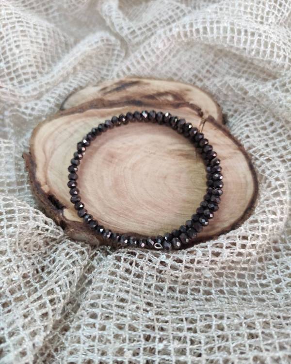 Βραχίολι βέργα χειροποίητο με χάντρες κρύσταλλο σε χρώμα καφέ σκούρες και μάυρες