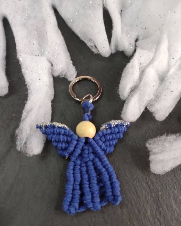 Χριστουγεννίατικο μπρελόκ μακραμέ αγγελάκι μπλέ. Η δίασταση του είναι 11 Χ 6,5 εκ. Θα το παραλάβετε σε συσκευασία δώρου.