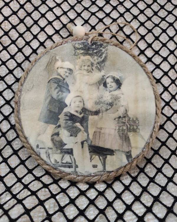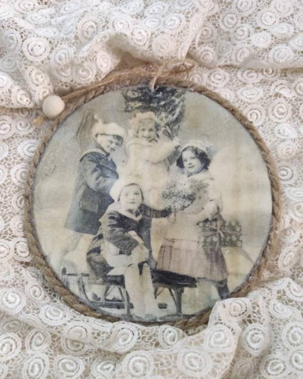 Καδράκι στρογγυλό με σχοινί γύρω γύρω με σχέδιο 4 παιδία , βαμμένο και διακοσμημένο με την τεχνική Decoupage , περασμένο με βερνίκι. Με διαστάσεις 16 Χ 16 3κ.