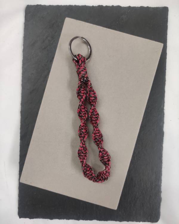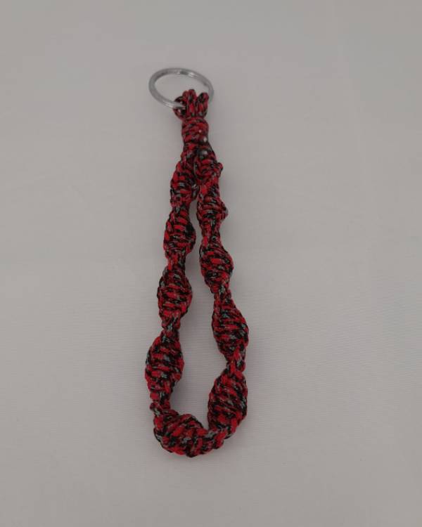 Χειροποιήτο μπρελόκ ανδρικό με πλέξη μακραμέ στριφτό , με κορδόνι κόκκινο μάυρο. Με μάκρος 15,5 εκ και φάρδος 1,5 εκ.