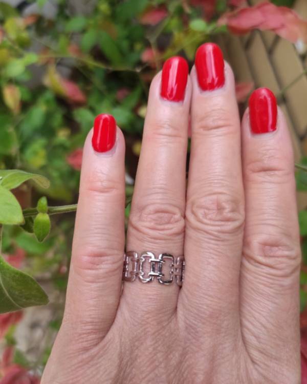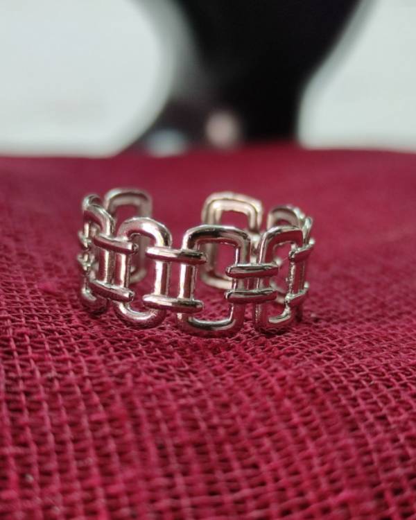 Δαχτυλίδι ατσάλινο ασημί αλυσίδα. Είναι αυξομειούμενο και το φάρδος του είναι 1 εκ. Σας 'ερχεται σε κουτάκι δώρου.