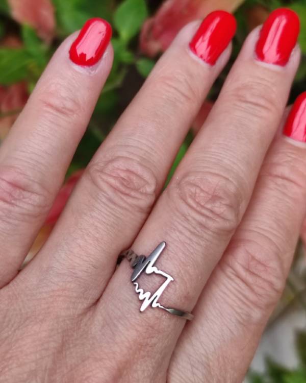 Δαχτυλίδι ατσάλινο με σχέδιο καρδιογράφημα. Το νούμερο του είναι 19.Η διάσταση που έχει το σχέδιο είναι 1,5 Χ 1,5 εκ. Ένα όμορφο δωράκι για εσάς η' για το αγαπημένο σας πρόσωπο. Σας έρχεται σε κουτάκι δώρου.