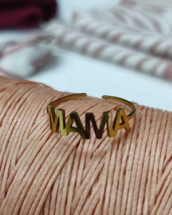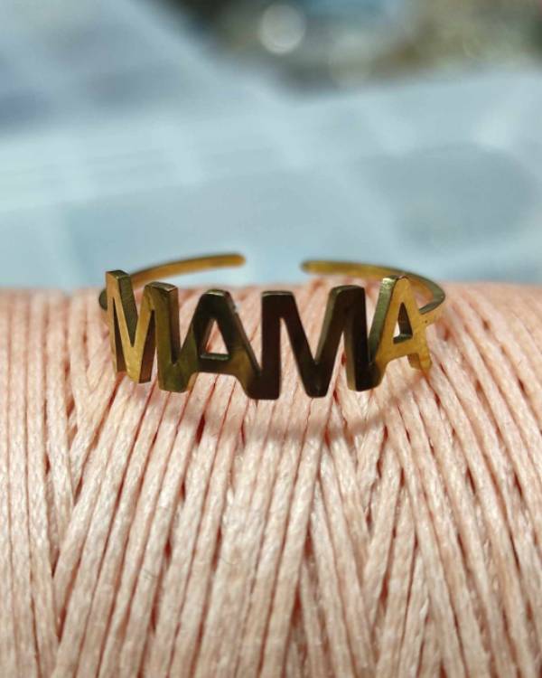 Δαχτυλίδι  ατσάλινο σε χρυσό χρώμα, με την λέξη ΜΑΜΑ. Είναι με αυξομέιωση, οπότε δεν χρειάζεται νούμερα. Σας έρχεται σε συσκευασία δώρου.