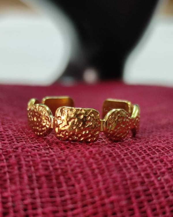 Δαχτυλίδι ατσάλινο χρυσό σφυριλατό. Είναι αυξομειούμενο και το φάρδος του είναι 0,5 εκ. Σας 'ερχεται σε κουτάκι δώρου.