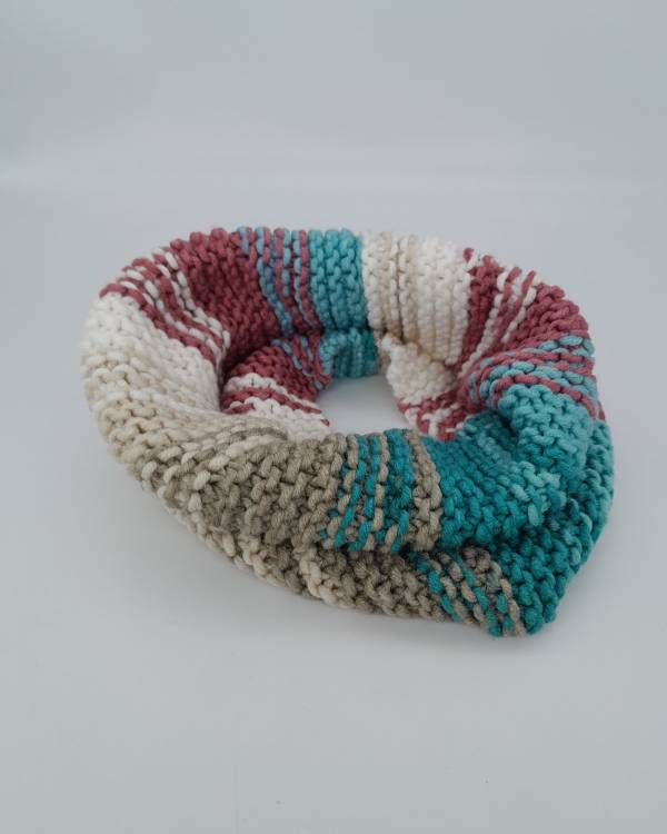 Χειροποίητος λαιμός ,κασκόλ μονός γυναικείος πολύχρωμος με χρώματα λευκό , πράσινο , καφέ ανοιχτό και μπορντό.