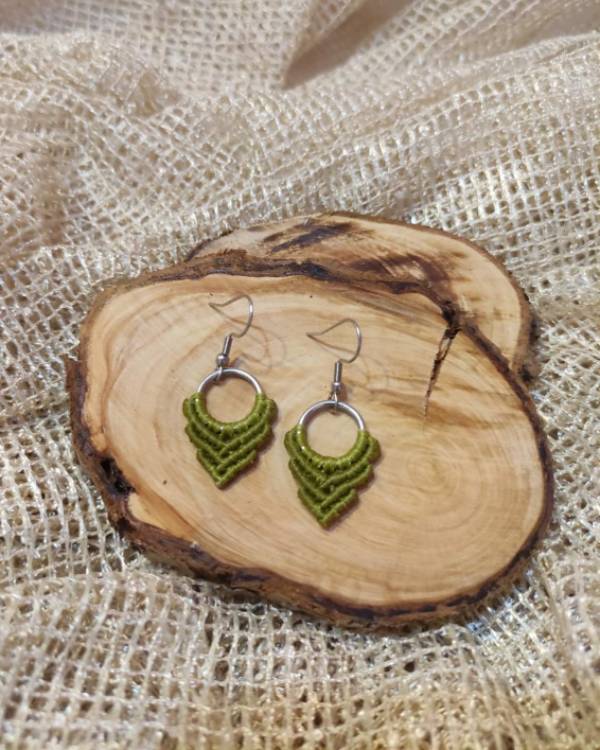 17β   Σκουλαρίκια Μακραμε Μικρό Κρίκος Λαχανί (1)