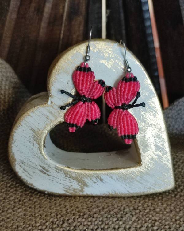 51   α    Πεταλούδα  Σκουλαρίκια Μακραμέ  Ρόζ (1)