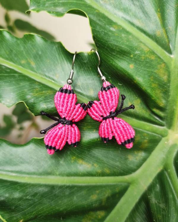 51   Πεταλούδα Σκουλαρίκι Μακραμέ Ρόζ (1)