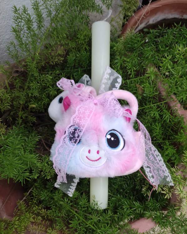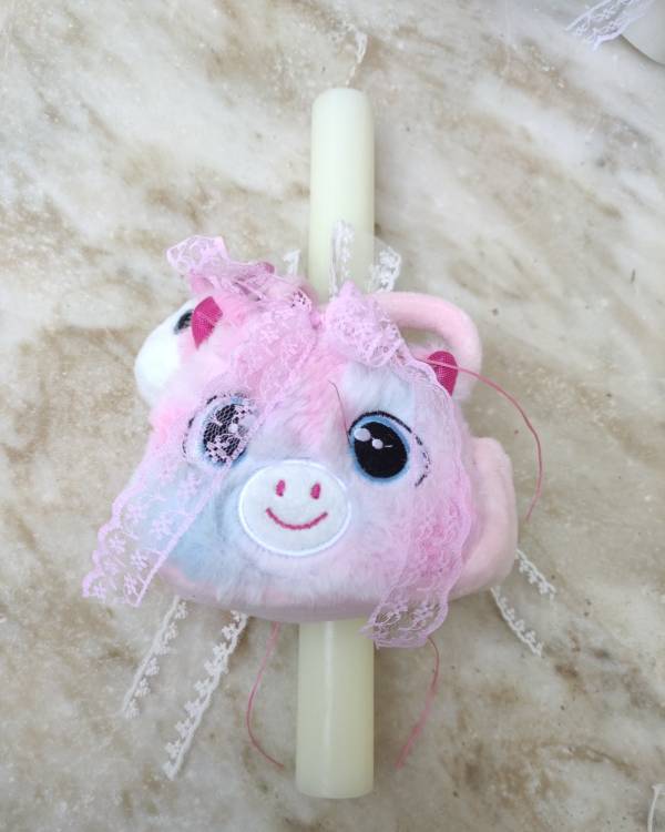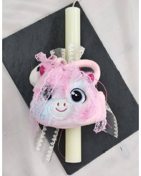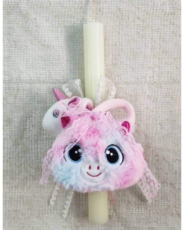 Χειροποιήτη λαμπάδα λευκή στρογγυλή, με στοιχείο ένα τσαντάκι με ενα λούτρινο αλογάκι μέσα. Η δίασταση της είναι λαμπάδα 30 Χ 3 και το σχέδιο είναι 17 Χ 14 εκ. Θα την παραλάβετε σε συσκευασία δώρου.
