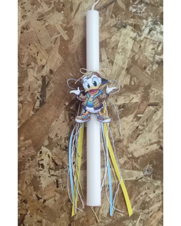 Χειροποιήτη λαμπάδα στρογγυλή, με κορδέλες και στοιχείο τον Χιού. Η διάσταση της λαμπάδας είναι 30 Χ 2 εκ και του στοιχείου 8 Χ 6,5 εκ. Σας έρχεται σε συσκευασία λαμπάδας.