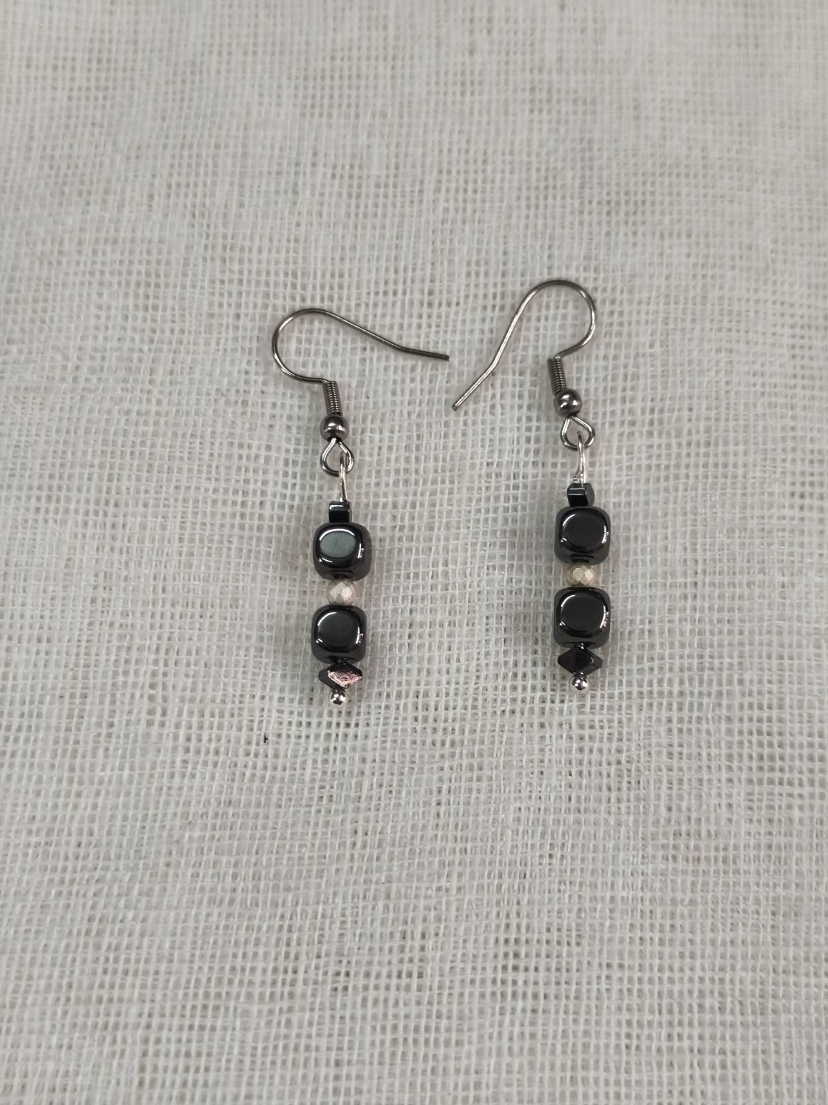 Χειροποιήτα σκουλαρίκια κρεμαστά με γαντζάκι ατσάλινο, με πέτρες αιματήτες. Το μάκρος του είναι 4,5 εκ.  Θα το παραλάβετε σε συσκευασία δώρου.