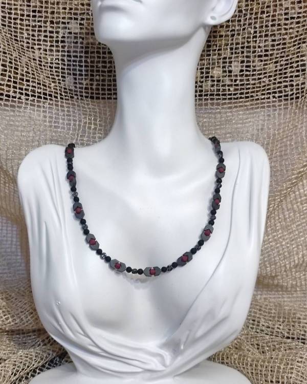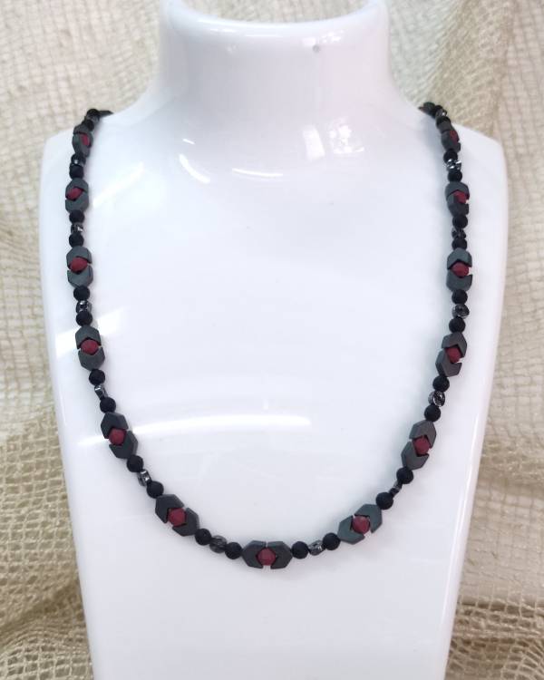 Κολίε Αιματίτες Μαυρο Μπορντό