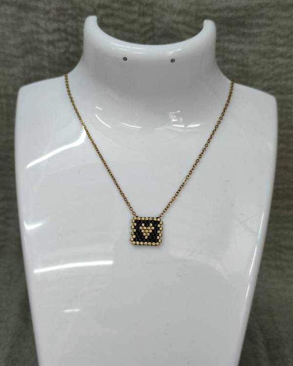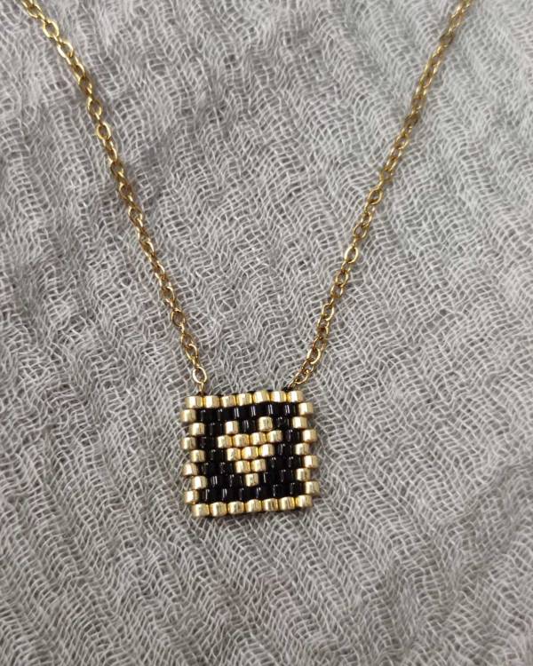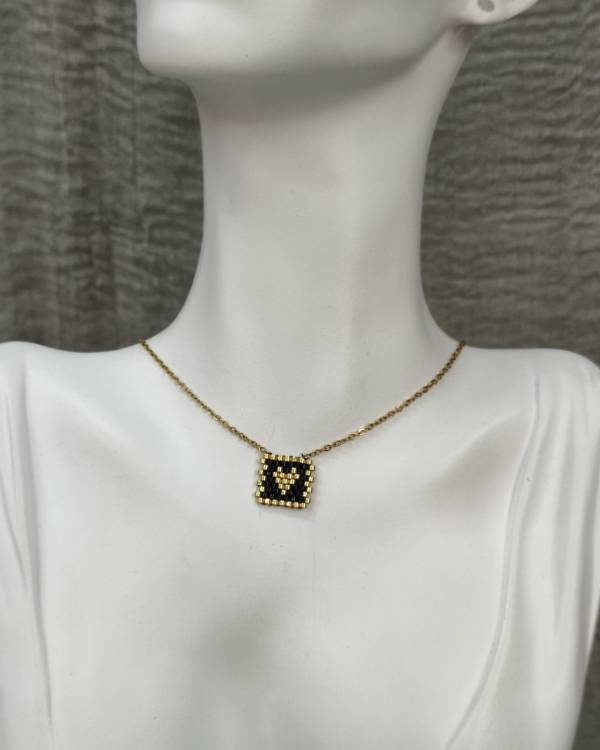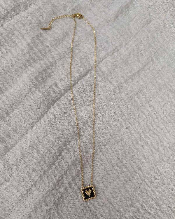 Κολίε ατσάλινο με στοιχείο μαύρο με καρδία. Η αλυσίδα είναι σε χρυσό και το στοιχείο είναι φτιαγμένο απο πετρούλες. Η δίασταση της αλυσίδας είναι 20 εκ, μαζί με το στοιχείο είναι 22 εκ και το σχέδιο είναι 1,2 Χ 1,2 εκ. Θα το παραλάβετε σε συσκευασία δώρου.