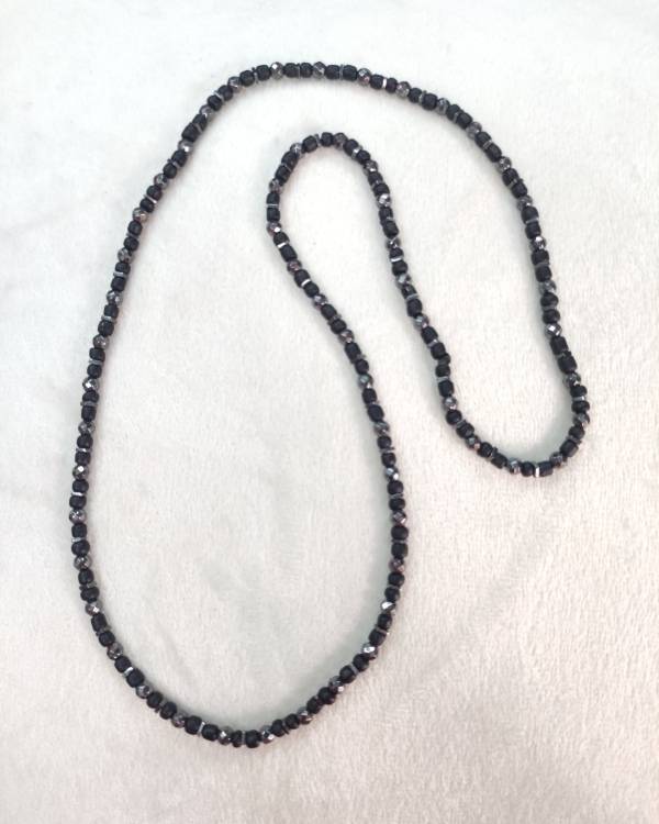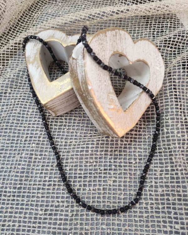 Κολίε χειροποίητο με ημιπολύτιμες πέτρες αιματίτη και χάντρες σε μάυρο χρώμα. Με μάκρος 30 εκ. Θα το παραλάβετε σε συσκευασία δώρου.
