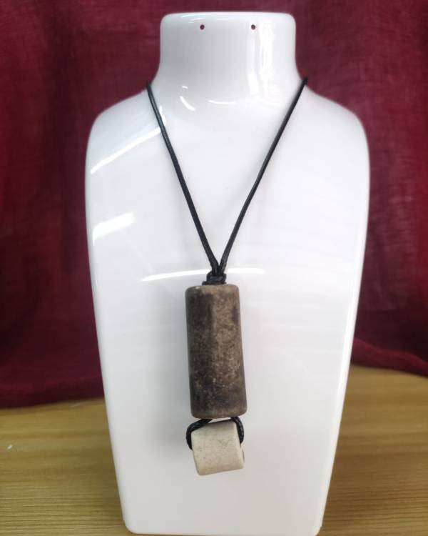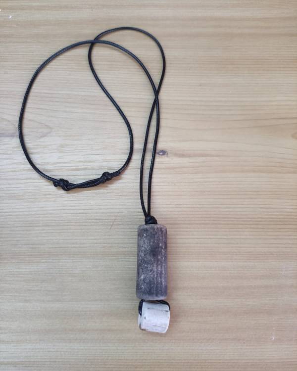 Κολίε με πίλινες πέτρες σε μαυροκαφέ και εκρού, περασμένες σε κορδόνι δερματίνη μάυρο. Το κορδόνι είναι αυξομειούμενο και φτάνει μέχρι 40 εκ και οι πέτρες έχουν μάκρος 6 εκ. Θα το παραλάβετε σε συσκευασία δώρου.