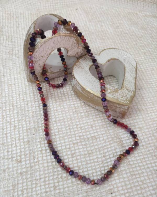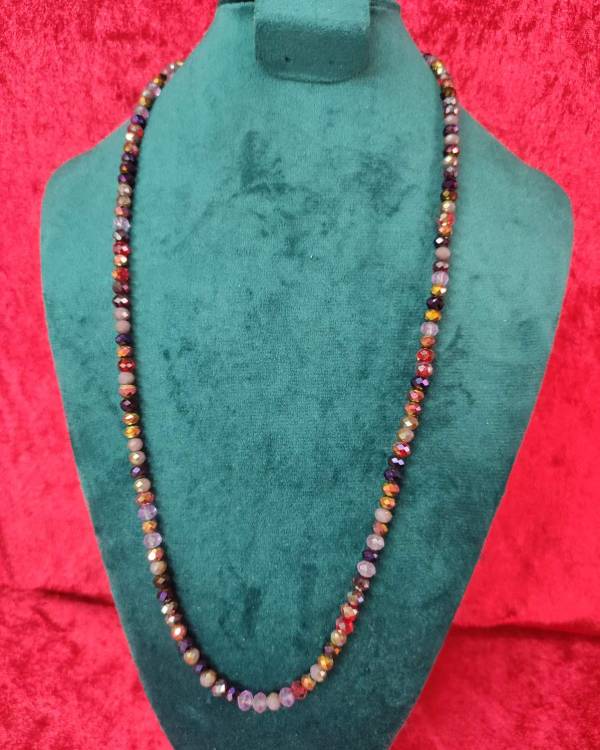 Χειροποιήτο μακρύ κολίε με χάντρες κρύσταλλα πολύχρωμα. Δεν χρειάζεται κούμπωμα. Με μάκρος 33 εκ.
