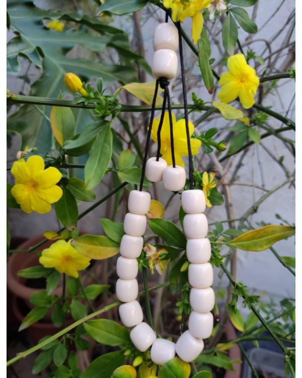 Χειροποιήτο κομπολόϊ λευκό απο μίγμα κεχριμπαριού με 19 χάντρες. Το μάκρος του με τις χάντρες είναι 25 εκ και όλο μαζί είναι 31 εκ.