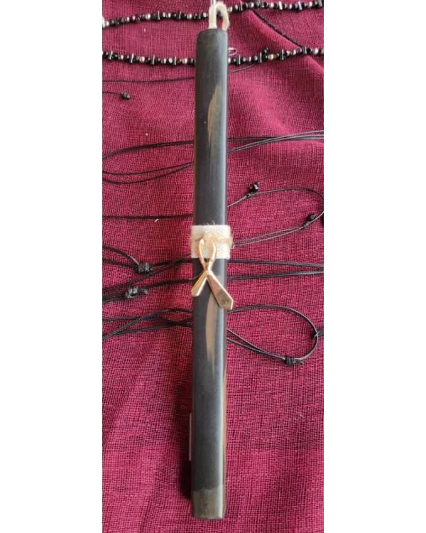 Λαμπάδα τετράγωνη μάυρη, με πινελίες χρυσές, με στοιχείο χρυσή γραβάτα και σχοινί. Με δίασταση 25 εκ ύψος και φάρδος 1,5 Χ 1,5 εκ. Σας  έρχεται με κουτί για λαμπάδα, για να το προσφέρεται στο αγαπημένο σας πρόσωπο.
