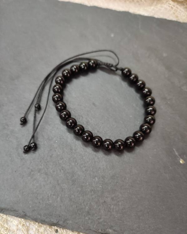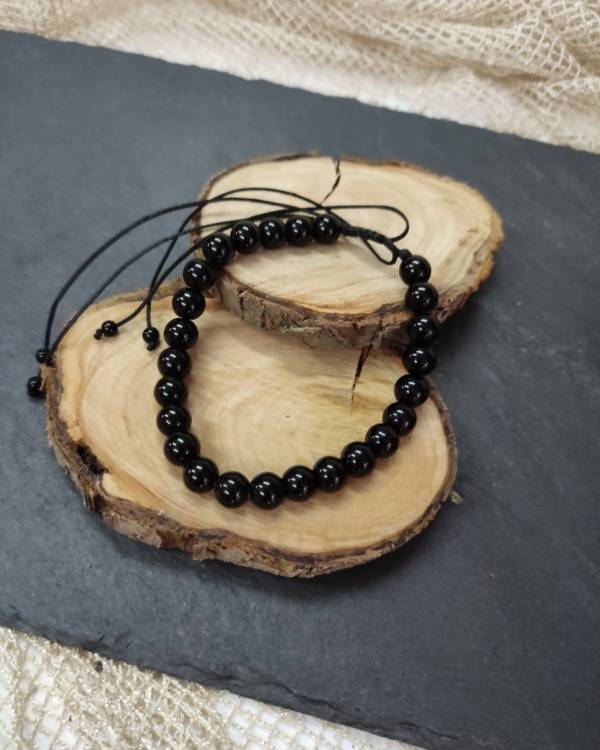 Χειροποιήτο βραχιόλι με ημιπολυτιμες πέτρες μάυρες, διαθέτει κούμπωμα αυξομείωσης. Με μάκρος 19 εκ, μαζί με το κούμπωμα είναι 20 εκ.