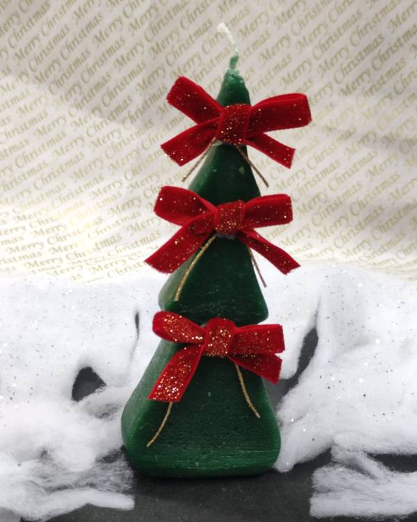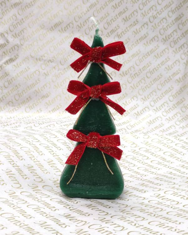 Χριστουγεννίατικο κέρι δέντρο πράσινο, με φιογκάκια. Η δίασταση του είναι 15 Χ 6 εκ.Θα το παραλάβετε σε συσκευασία δώρου.