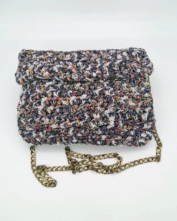 Τσάντα φάκελος με νήμα πολύχρωμο χνουδωτό , για όλες της ώρες. Μαγνητάκι για κούμπωμα και αλυσίδα. Με ύψος 24 εκ και φάρδος 20 εκ.