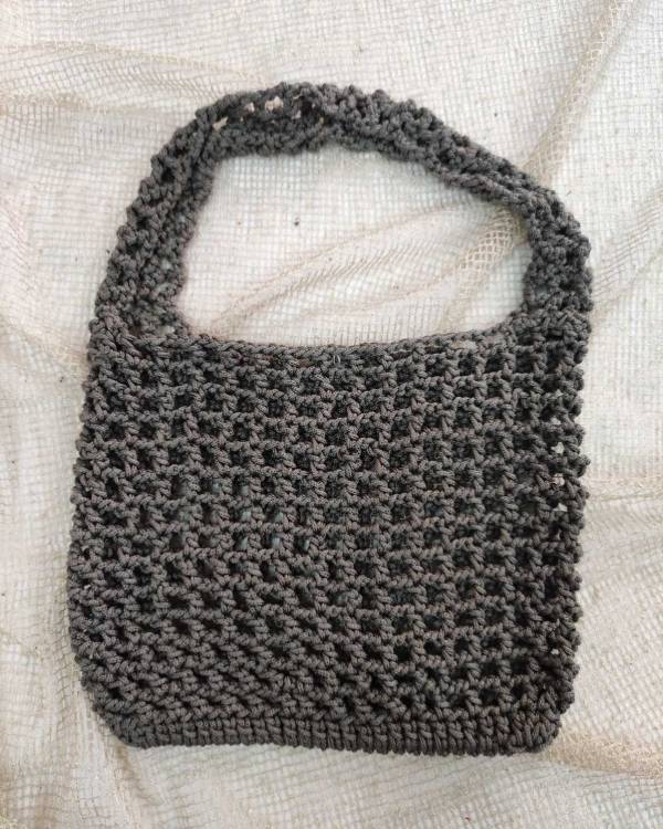 Χειροποίητο μικρό τσαντάκι δίχτυ για καθημερινά χρήση σε χρώμα καφέ. Το μάκρος της είναι 20 εκ και φάρδος 25 εκ.